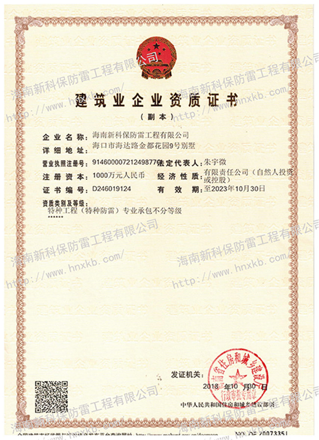 海南新科保防雷工程有限公司是一家集防雷技術(shù)研究、防雷檢測、防雷工程設計施工、安防監(jiān)控工程設計施工、建筑智能化施工、建筑水電施工于一體的高科技公司。在相關(guān)主管部門監(jiān)管下,致力于為客戶提供專業(yè)的安全防護、建筑智能化、水電技術(shù)等優(yōu)質(zhì)產(chǎn)品和工程服務。